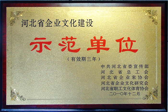 • 河北省企业文化建设示范单位荣誉